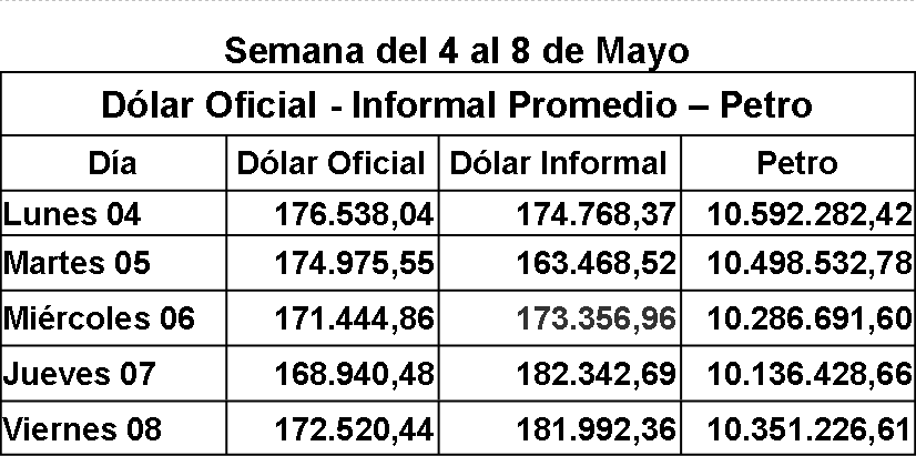 *Dólar y Petro Jueves 7 de Mayo: https://www.aporrea.org/economia/n354968.html