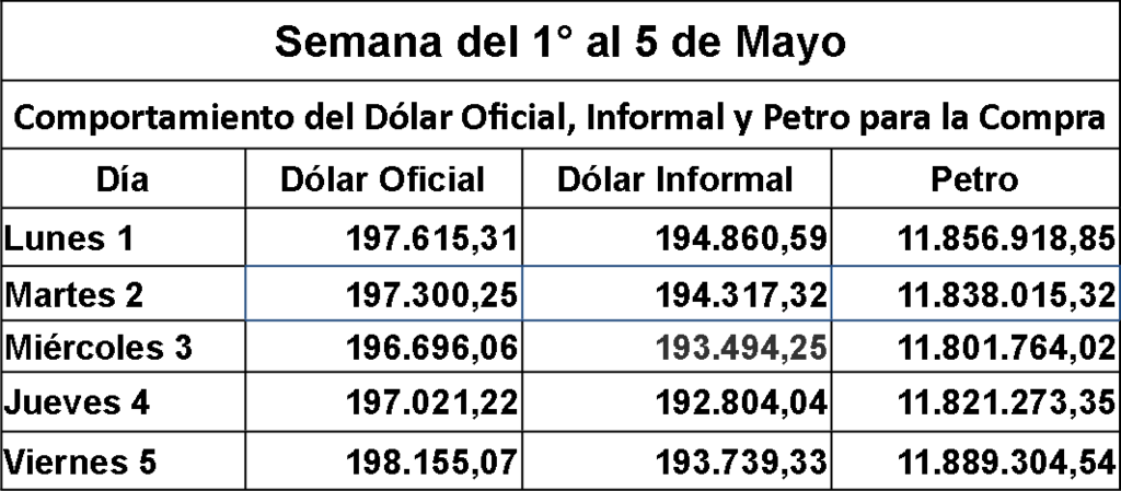 Ver Dólar y Petro Jueves 4 de Junio: https://www.aporrea.org/economia/n355813.html