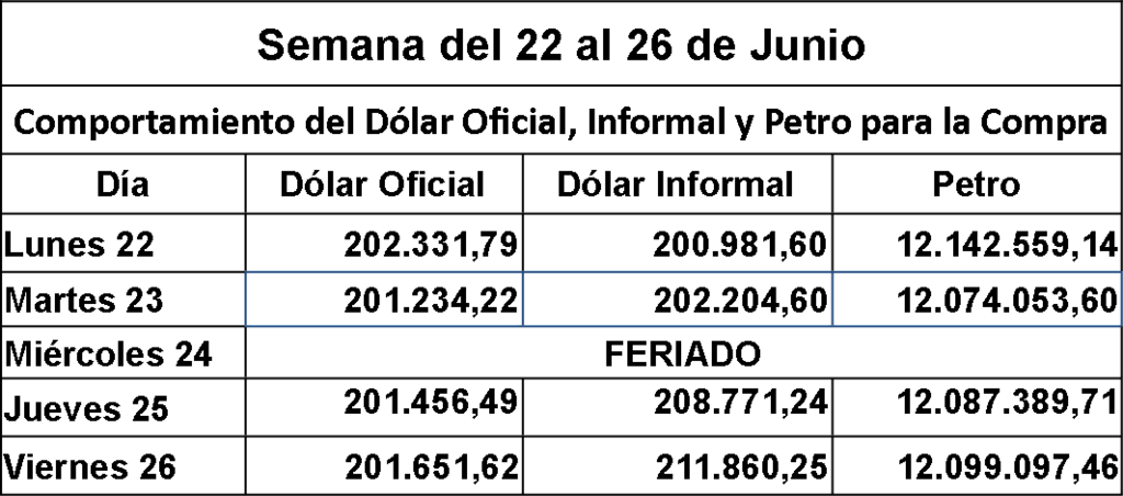 Ver Dólar y Petro del Jueves 25 de Junio: https://www.aporrea.org/economia/n356465.html