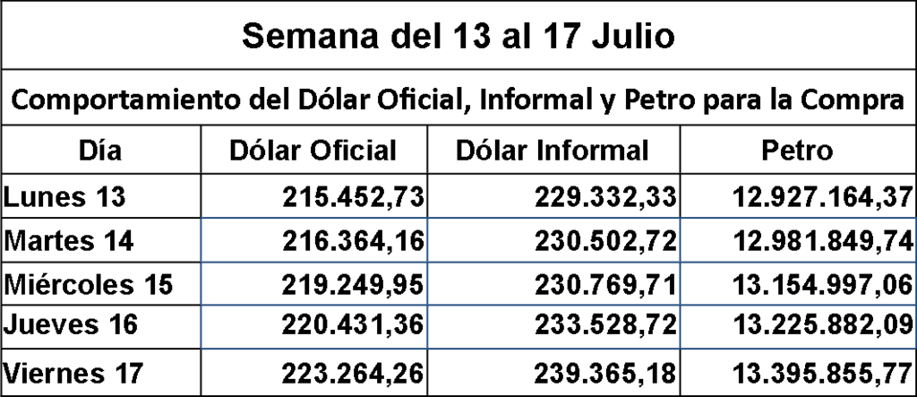 Ver Dólar y Petro del Jueves 16 de Julio: https://www.aporrea.org/economia/n357126.html