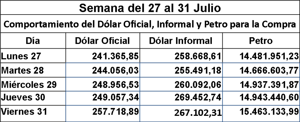 Ver Dólar y Petro del Jueves 30 de Julio: https://www.aporrea.org/economia/n357502.html