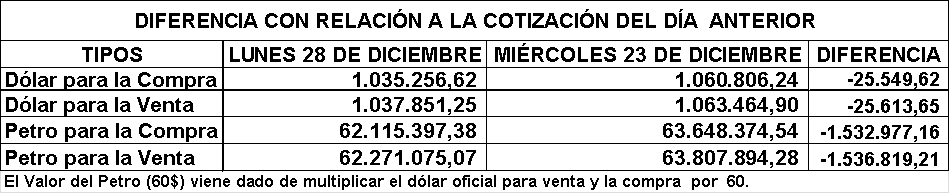 Ver Dólar y Petro del Miércoles 23 Dic.: https://www.aporrea.org/economia/n361523.html