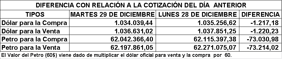 Ver Dólar y Petro del Lunes 28 Dic.: https://www.aporrea.org/economia/n361609.html