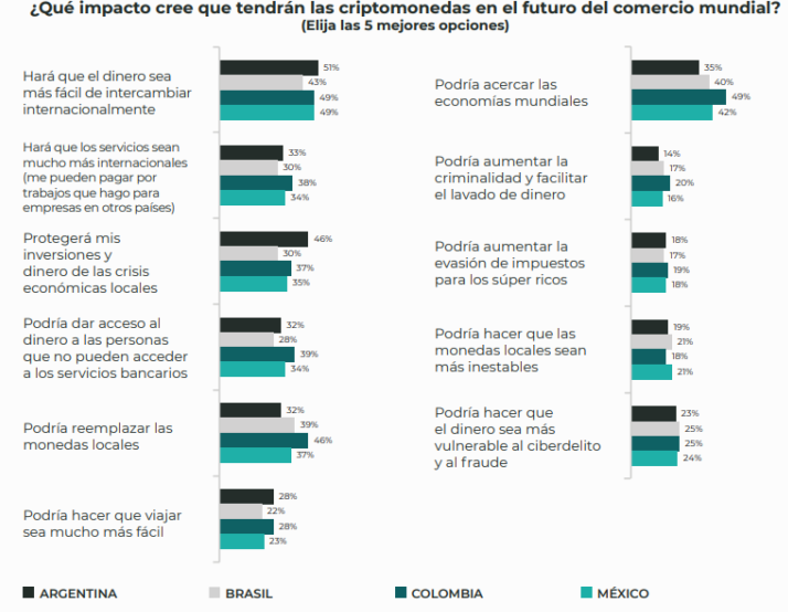 El estudio incluye aspectos claves del ecosistema blockchain en 21 países latinoamericanos, además de los resultados de una encuesta exclusiva de Toluna con más de 2.200 personas en Argentina, Brasil, Colombia y México para comprender sus actitudes hacia las divisas digiales.