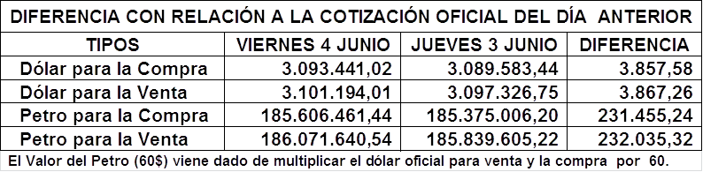 - Ver Dólar y Petro de ayer Jueves 3 de Junio: https://www.aporrea.org/economia/n365274.html