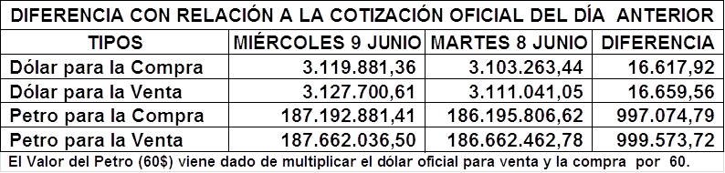 Ver Dólar y Petro del pasado Martes 8 de Junio: https://www.aporrea.org/economia/n365366.html