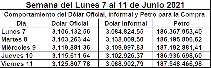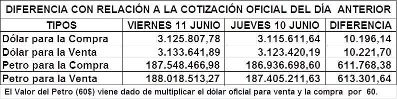 - Ver Dólar y Petro del pasado Jueves 10 de Junio: https://www.aporrea.org/economia/n365422.html