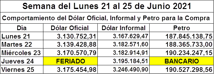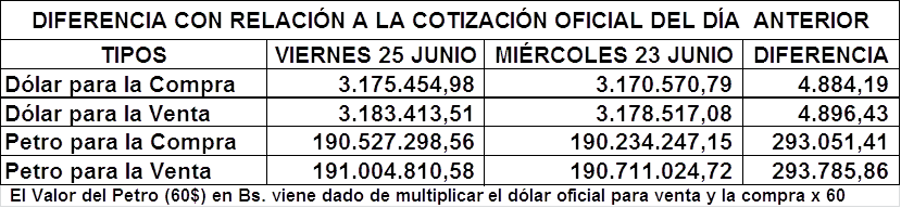 - Ver Dólar y Petro antier Miércoles 23 de Junio: https://www.aporrea.org/economia/n365730.html