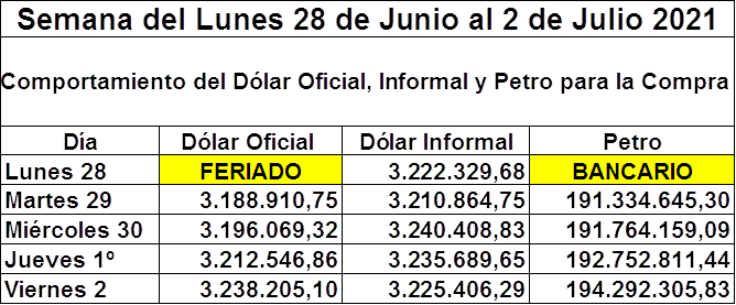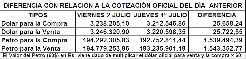 - Ver Dólar y Petro del pasado Jueves 1º de Julio: https://www.aporrea.org/economia/n365878.html