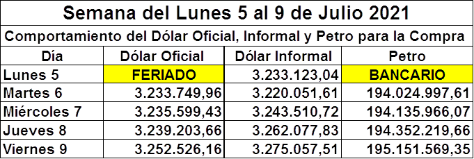 • Ver Dólar y Petro de ayer Jueves 8 de Julio: https://www.aporrea.org/economia/n366039.html