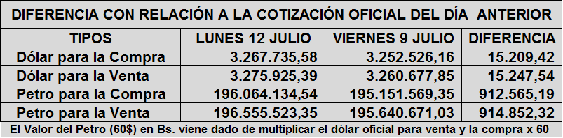 - Ver Dólar y Petro de ayer Viernes 9 de Julio: https://www.aporrea.org/economia/n366058.html