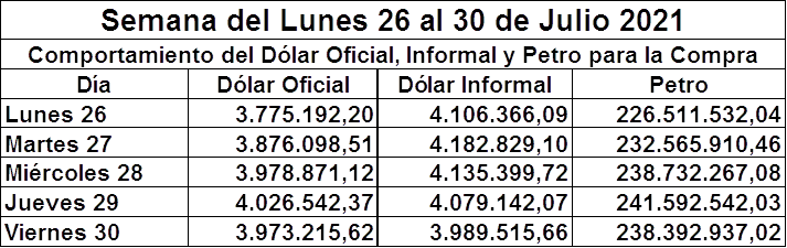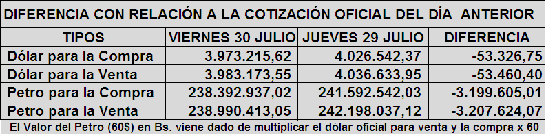 - Ver Dólar y Petro de ayer Jueves 29 de Julio: https://www.aporrea.org/economia/n366544.html