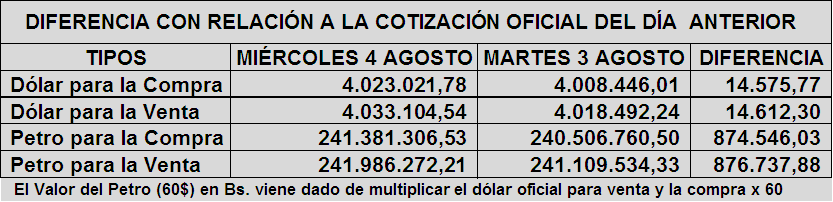 - Ver Dólar y Petro de ayer Martes 3 de agosto: https://www.aporrea.org/economia/n366656.html