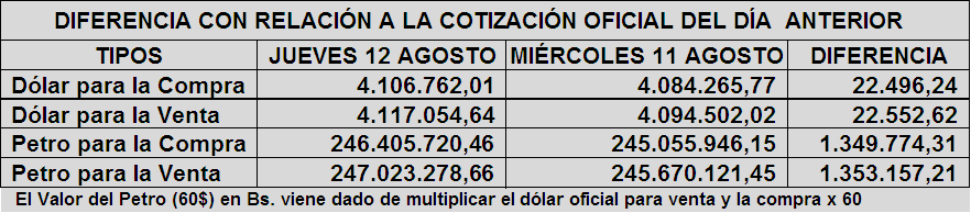 • Ver Dólar y Petro de ayer Miércoles 11 de agosto: https://www.aporrea.org/economia/n366854.html