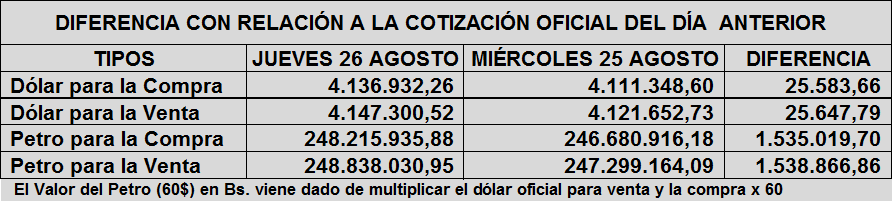 - Ver Dólar y Petro de ayer Miércoles 25 de agosto: https://www.aporrea.org/economia/n367254.html