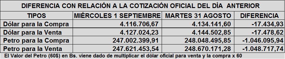 • Ver Dólar y Petro de ayer 31 de agosto: https://www.aporrea.org/economia/n367410.html