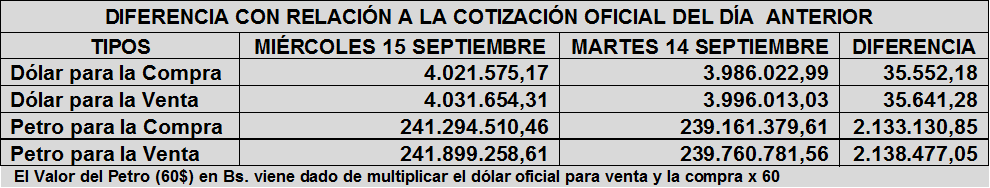 - Ver Dólar y Petro de ayer Martes 14 de septiembre: https://www.aporrea.org/economia/n367774.html