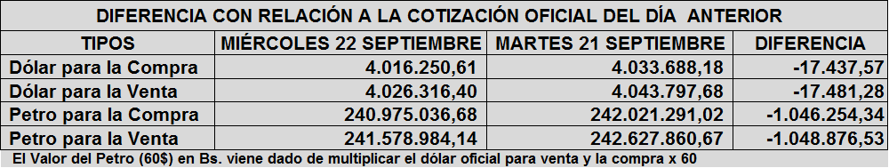 • Ver Dólar y Petro de ayer Martes 21 de septiembre: https://www.aporrea.org/economia/n367953.html