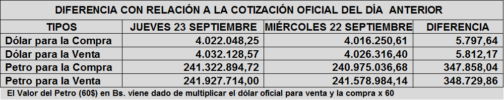 - Ver Dólar y Petro de ayer Miércoles 22 de septiembre: https://www.aporrea.org/economia/n367980.html