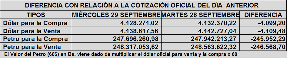 • Ver Dólar y Petro de ayer Martes 28 de septiembre: https://www.aporrea.org/economia/n368112.html