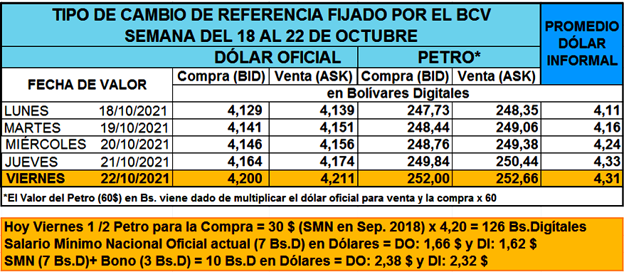 Ver semana anterior del 04 al 15 de Octubre en: https://www.aporrea.org/economia/n368562.html