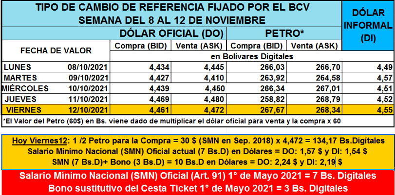 Ver semana anterior del 1º al 5 de Noviembre: https://www.aporrea.org/economia/n369078.html