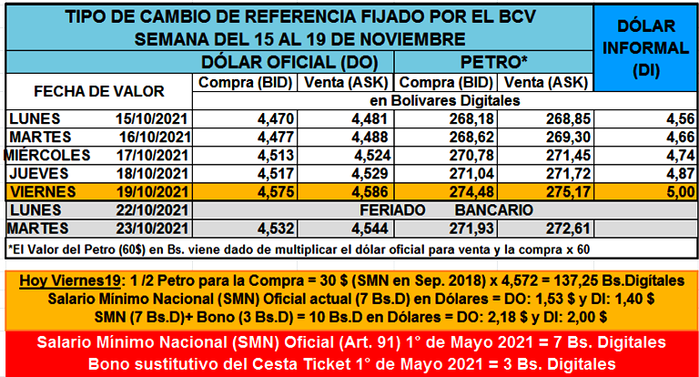 Ver semana anterior del 8 al 12 de Noviembre: https://www.aporrea.org/economia/n369275.html