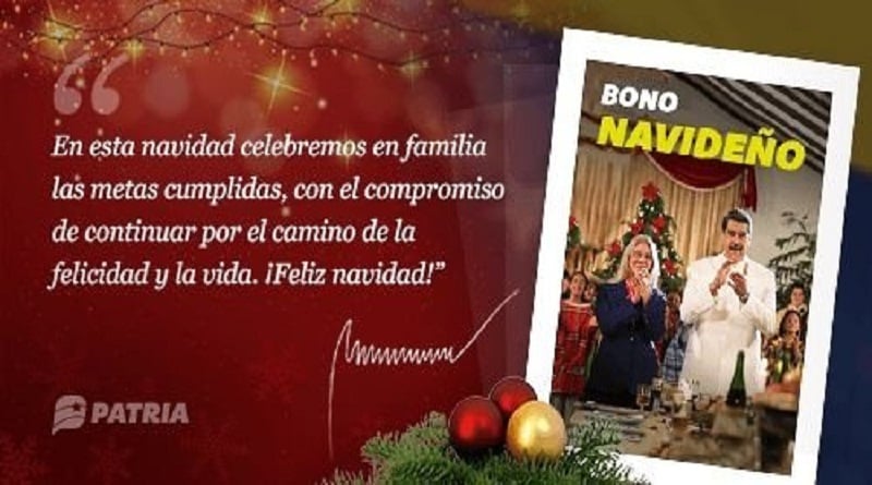 «Inicia la entrega del Bono Navideño 2021 enviado por nuestro Pdte. Nicolás Maduro a través del Sistema Patria», reza el post.