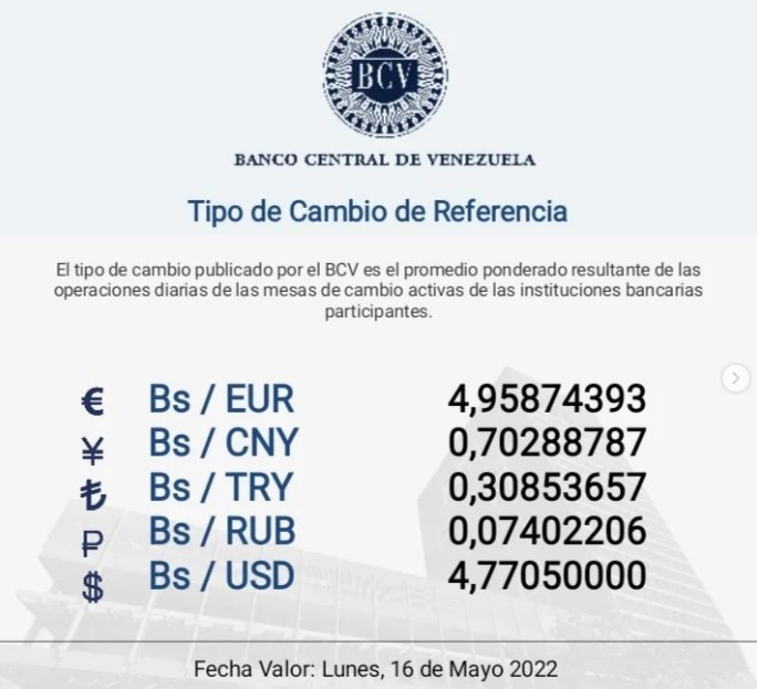 Esta paridad equivale a un tipo de cambio de 4,77 bolívares por dólar.