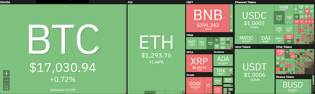A las 05:40, hora de ayer en Venezuela, el precio del bitcoin se encuentra en $16.996, mientras continúa batallando para mantenerse por encima de los $17.000.