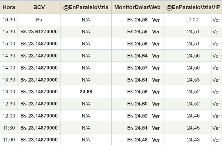 Por otro lado, el dólar paralelo en diversas plataformas cerró en este mismo día 07 de febrero 2023 en un promedio Bs.24,58 la unidad, según Monitor-DólarVenezuela.