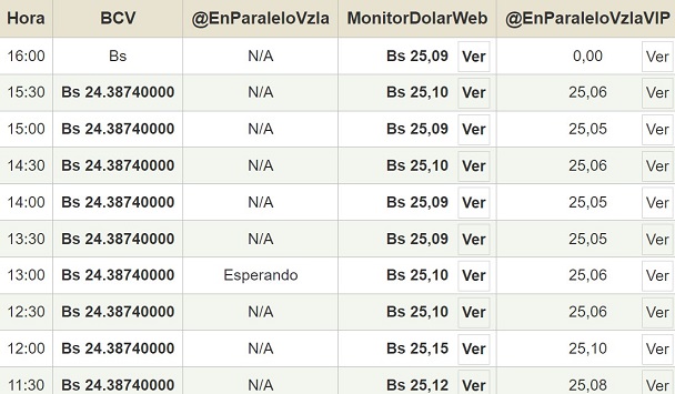Por otro lado, el dólar paralelo en diversas plataformas superó en el día de hoy, se mantuvo estable y cerró en un promedio de Bs.25,09 la unidad, según Monitor-DólarVenezuela.