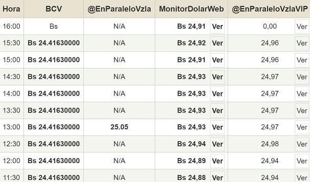 Por otro lado, el dólar paralelo en diversas plataformas en el día de hoy cerró en un promedio de Bs.24,91 la unidad, según Monitor-DólarVenezuela.