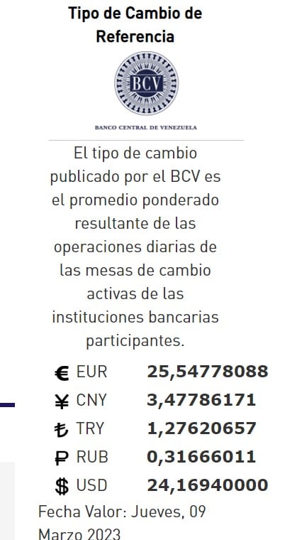 08-03-23.-El precio del dólar en el Banco Central de Venezuela (BCV) se mantuvo estable y se cotizó este miércoles 08 de marzo 2023 en Bs. 24,16 por unidad según la última actualización en su página web oficial y redes oficiales.
