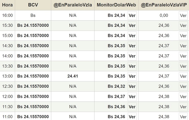 Por otro lado, el dólar paralelo en diversas plataformas bajó ligeramente y cerró en un promedio de Bs.24,34 la unidad, según Monitor-DólarVenezuela.