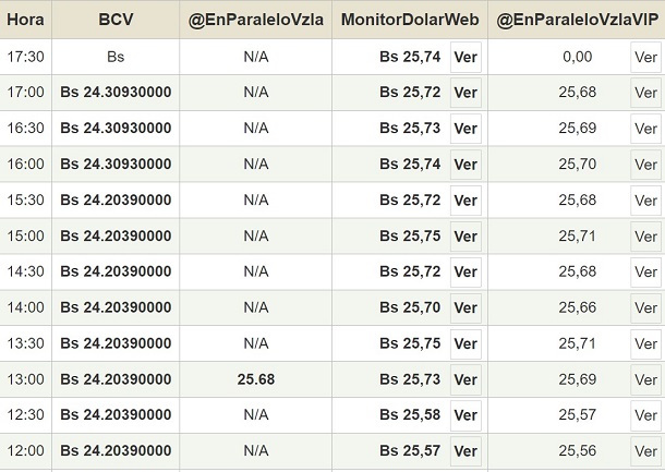 Por otro lado, el dólar paralelo en diversas plataformas subió ligeramente en la jornada de hoy y cerró en un promedio de Bs.25,74 la unidad, según Monitor-DólarVenezuela.