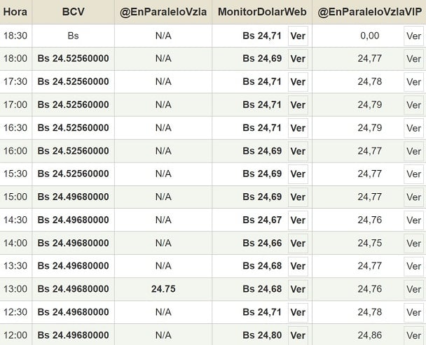 Por otro lado, el dólar paralelo en diversas plataformas en la jornada de hoy cerró en un promedio de Bs.24,71 la unidad, según Monitor-DólarVenezuela.