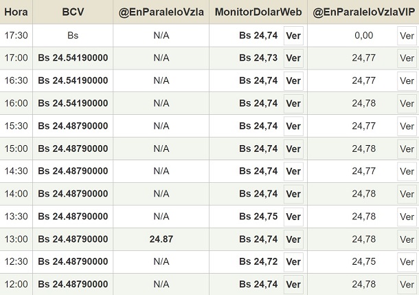 Por otro lado, el dólar paralelo en diversas plataformas en la jornada de hoy cerró en un promedio de Bs.24,74 la unidad, según Monitor-DólarVenezuela.