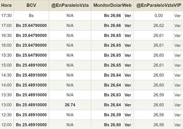 Por otro lado, el dólar paralelo en diversas plataformas en la jornada de hoy cerró en un promedio de Bs.26,66 la unidad, según Monitor-DólarVenezuela.