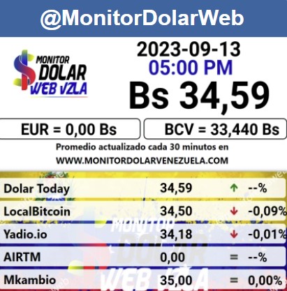 Por otro lado, el dólar paralelo en diversas plataformas en la jornada de hoy cerró en un promedio de Bs.34,59 la unidad, según Monitor-DólarVenezuela.