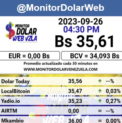 Por otro lado, el dólar paralelo en diversas plataformas en la jornada de hoy cerró en un promedio de Bs.35,61 la unidad, según Monitor-DólarVenezuela.