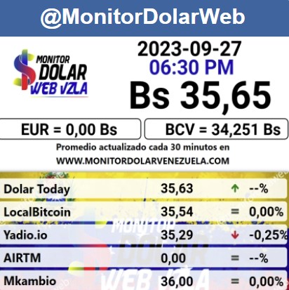 Por otro lado, el dólar paralelo en diversas plataformas en la jornada de hoy cerró en un promedio de Bs.35,65 la unidad, según Monitor-DólarVenezuela.