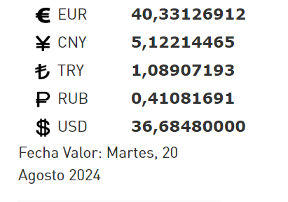 20-08-24.-El precio del dólar en el Banco Central de Venezuela (BCV) se cotizó este lunes 19 de agosto 2024 en Bs. 36,68 por unidad según la última actualización en su página web oficial y redes sociales.