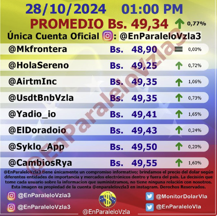 Por otro lado, el dólar paralelo en diversas plataformas en la jornada de hoy cerró en un promedio de Bs.4 la unidad, según Monitor-Noticias Venezuela.