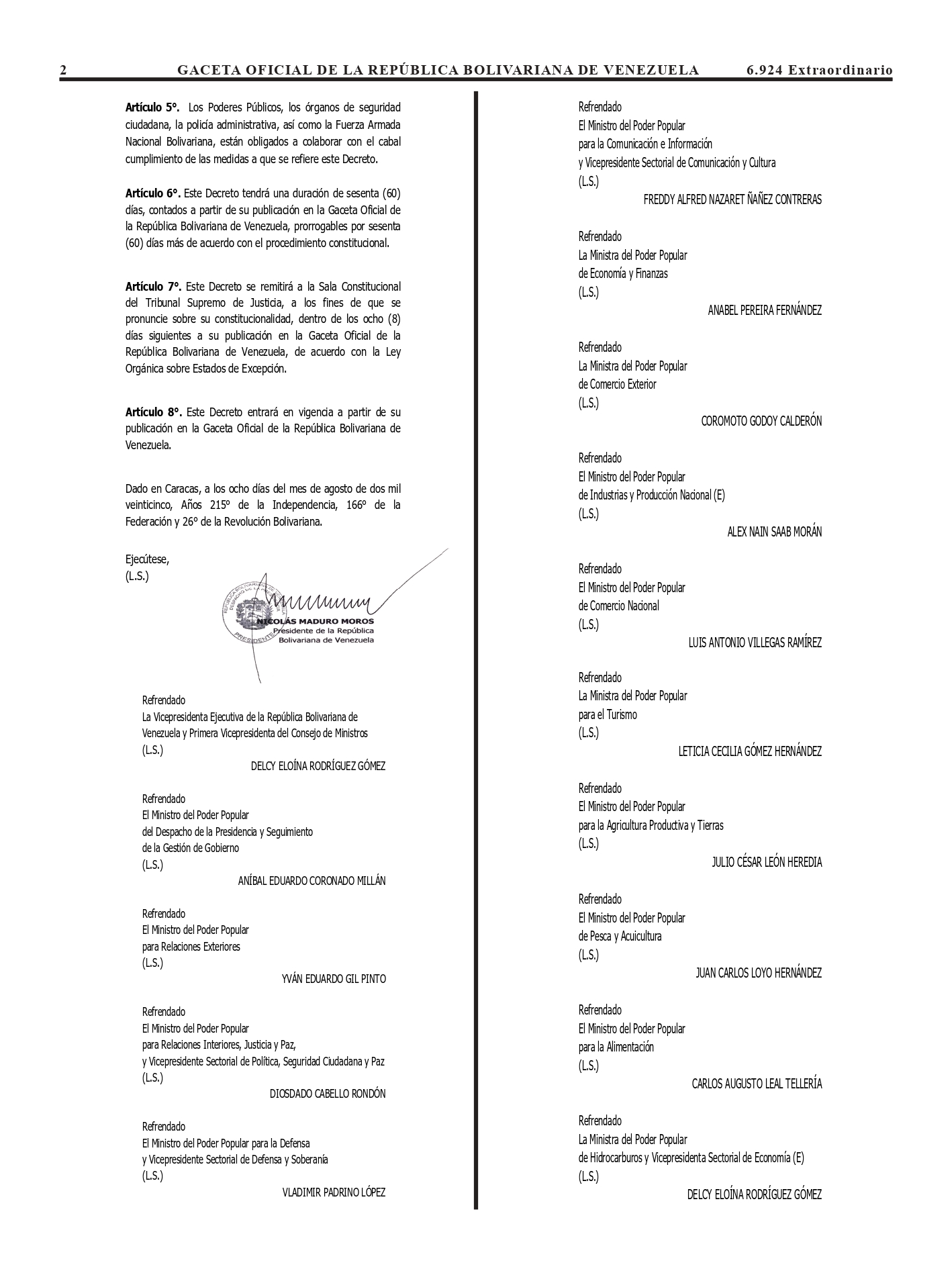 A través de Telegram, la presidenta ejecutiva, Delcy Rodríguez, indicó que tras el «éxito» de la aplicación de este decreto, Maduro «ha decidido renovar su contenido para seguir derrotando las sanciones imperiales, preservar el equilibrio económico y garantizar el pleno disfrute de sus derechos al pueblo venezolano».