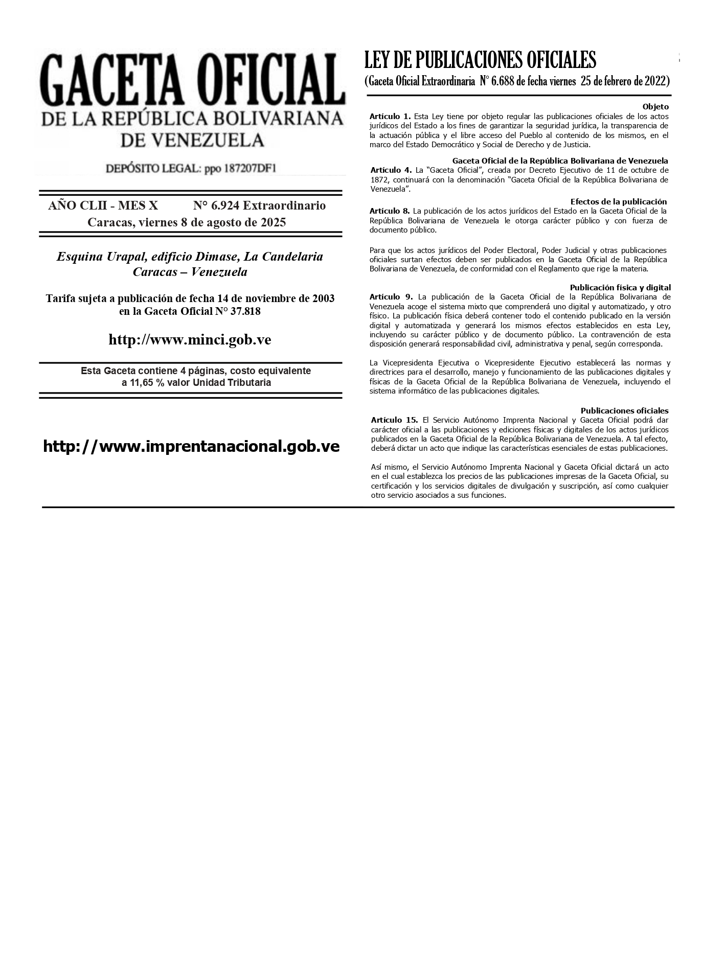 También podrá «autorizar las contrataciones que fueren necesarias para garantizar a la población el restablecimiento de sus derechos fundamentales», además de suspender la aplicación y cobro de tributos nacionales, estadales y municipales, así como de los trámites administrativos relacionados, «a fin de proteger el aparato productivo nacional».