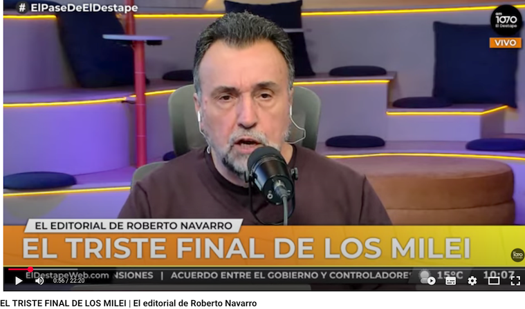 Jueves, 25 de septiembre de 2025.- Roberto Navarro, dirigiéndose directamente al presidente Milei, le señaló: ayer perdiste la calle.