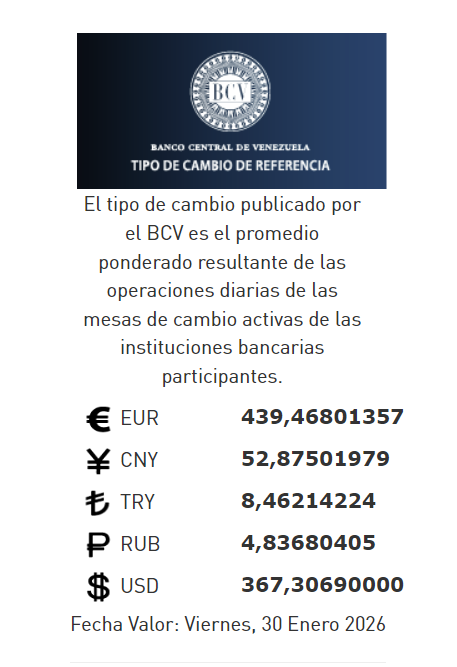 El tipo de cambio que publicó el BCV es el promedio ponderado que resulta de las operaciones diarias de las mesas de cambio activas de las instituciones bancarias participantes.