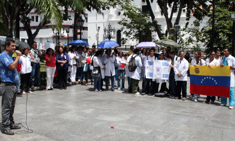 11.10.10.- Como parte de la conmemoración del 43 aniversario de la muerte del revolucionario argentino Ernesto “Che” Guevara y la celebración del 5to aniversario del Día del Médico Integral Comunitario; estudiantes del Programa Nacional de Formación en Medicina Integral Comunitaria (Pnfmic) se congregaron este viernes en la Plaza Bolívar de Caracas para ofrendar con flores la estatua ecuestre del Libertador y resaltar la importancia de la medicina socialista para la transformación del país.