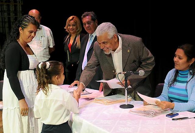 Valencia, 09 de noviembre de 2010.- Un total de 429 becas recibieron estudiantes de escuelas municipales y nacionales en las instalaciones del Teatro Municipal de Valencia, en un acto encabezado por el Alcalde Bolivariano, Edgardo Parra Oquendo, quien hace realidad un programa para favorecer a niños y jóvenes de escasos recursos económicos de la localidad a través de la Dirección de Educación y la Fundación para el Desarrollo Educativo de Valencia (Fundeval).